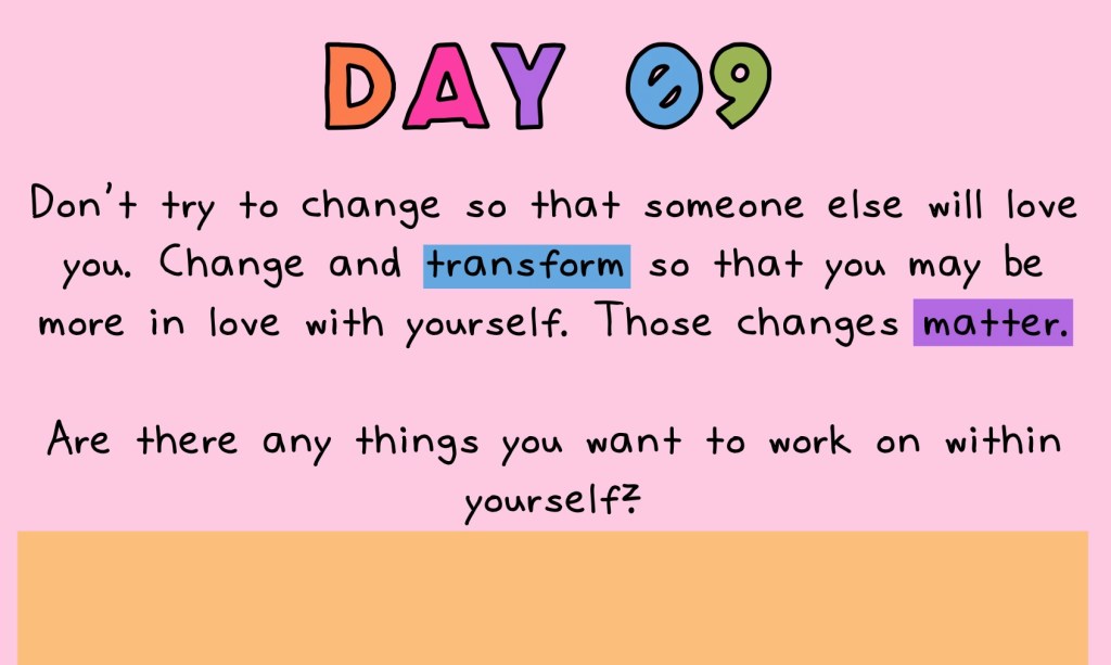 In response to the question above I want to continue to learn how to extend grace to myself that I have learned to give to others. And to continue to learn to make good choices about eating and other aspects of my health.