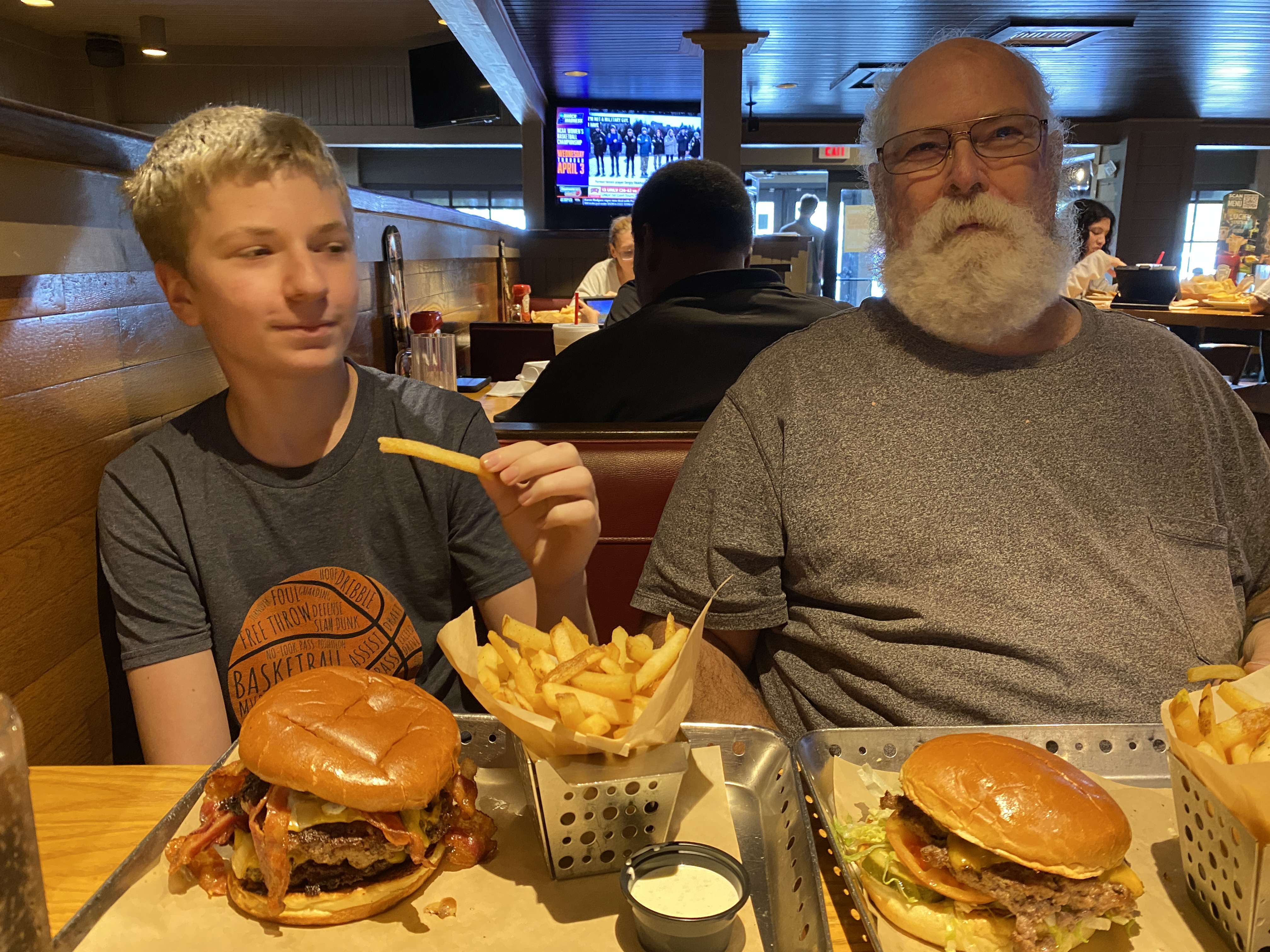 We asked Christopher what he wanted to do while hanging with us…watching movies, eating burgers and sleeping in! So we did…we watched the 2008 Batman movie “The Dark Night” and then the new release “The Adam Project.” They are not movies we would have chosen to watch but we are glad we did. “The Adam Project” had amazing special effects and a great message at the end of the movie.