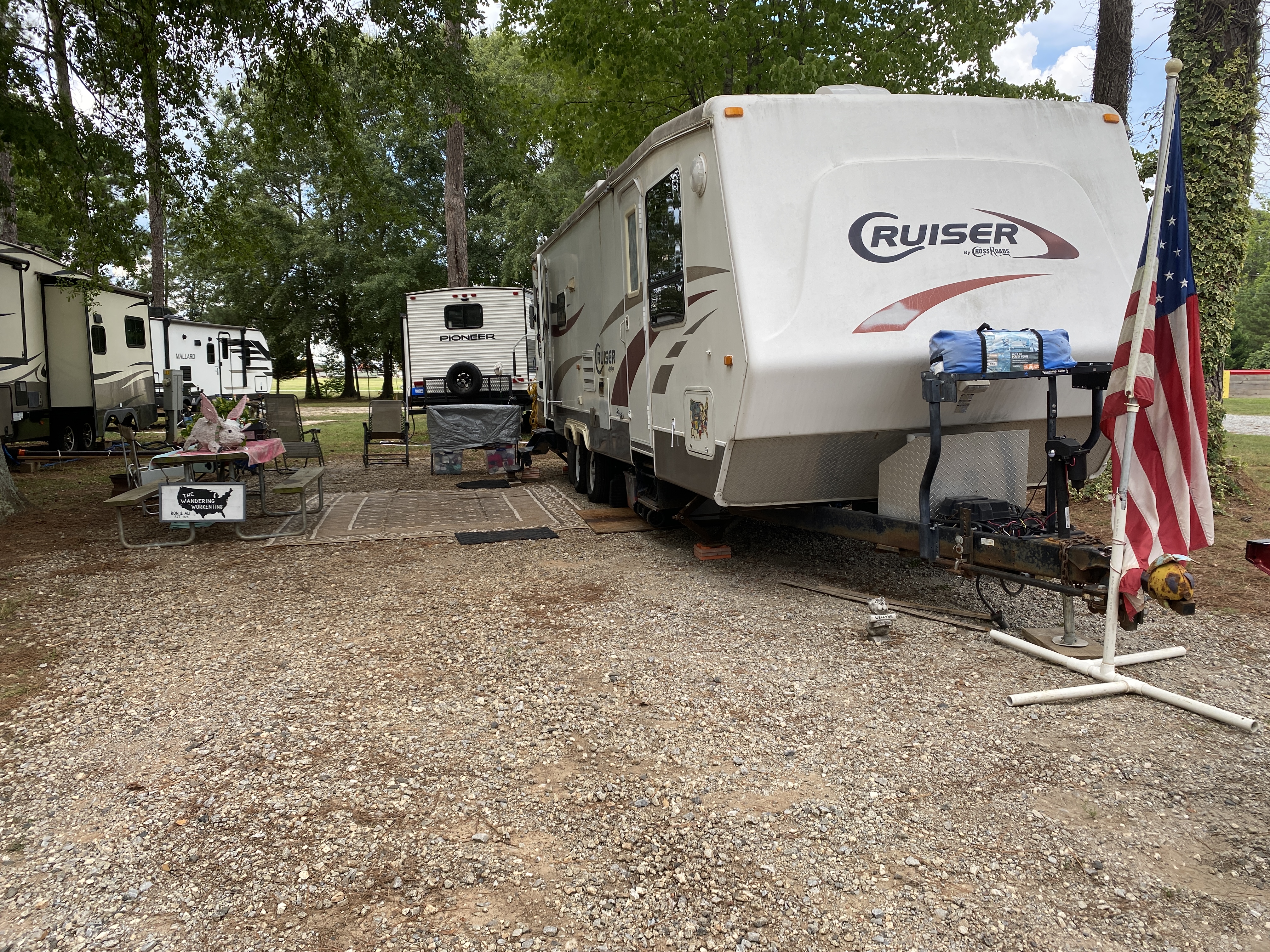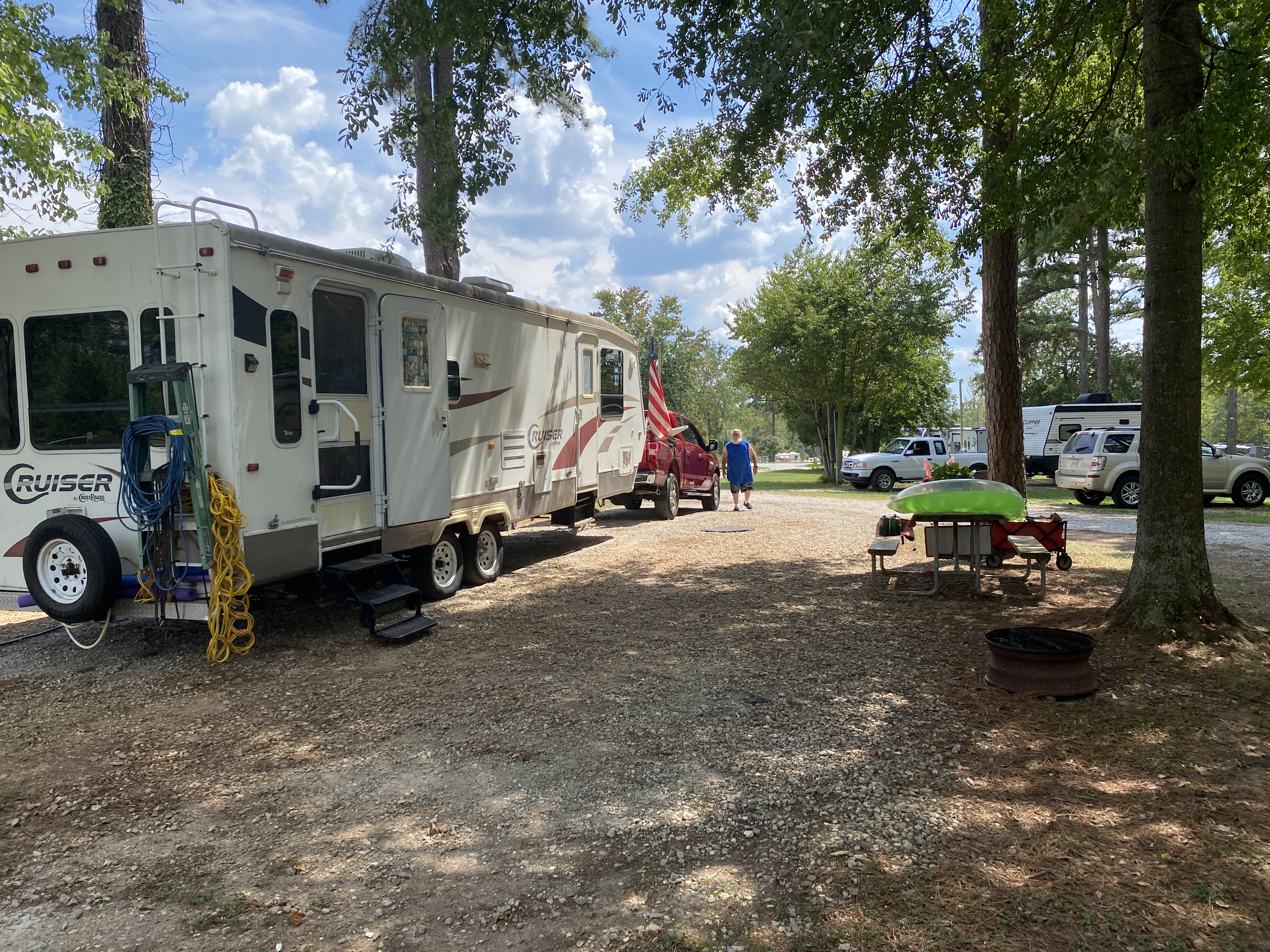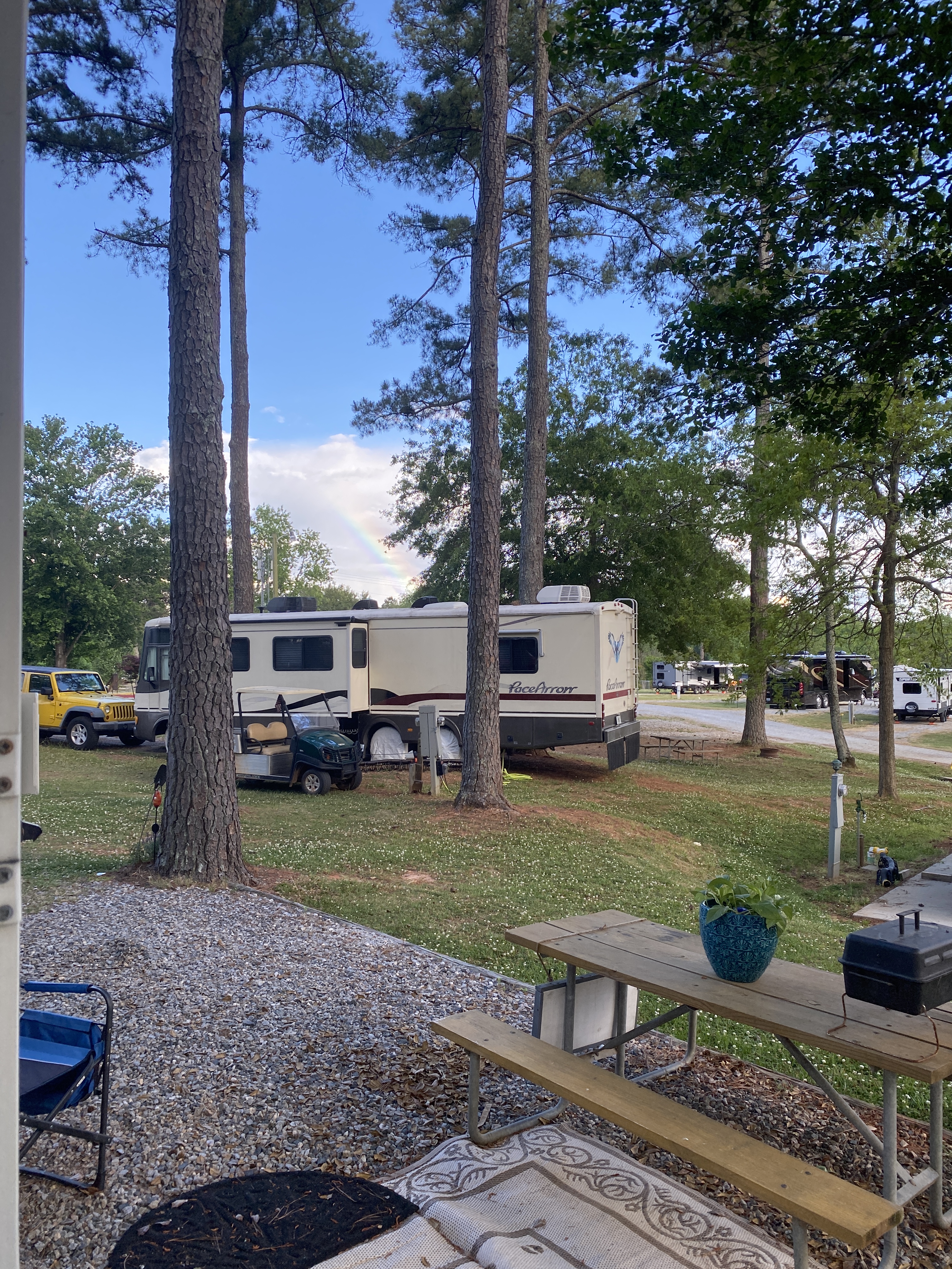 And we changed sites at our campground. There are lots of changes on the horizon (which we can’t publicly share yet). Our new site is much bigger, has a great area for a firepit and we have a great view of the entrance to the campground. This is the view from our old site (#37)