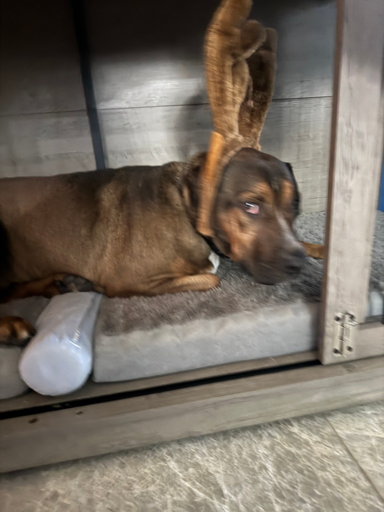 The look Charlie gives me quite often 😊. I’m so glad we have him. He makes us laugh a lot and gives great snuggles. I took a nap. Ron did laundry at work. After Ron got home we went to B & D’s for a delicious dinner of pork roast, roasted potatoes, sunflower chopped salad with rolls. We then played a game pf