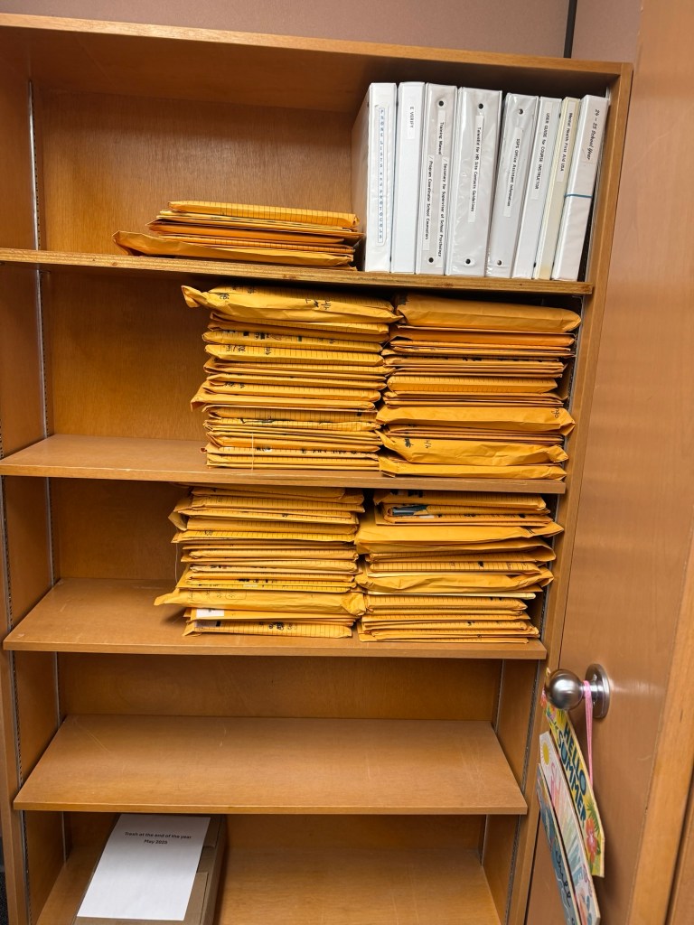 Each of the courier envelopes that you see pictured have at least one Teal in them, many of them have four or five. These are just the ones I’ve received in April. I can only imagine how many will greet me when I return to work on May 28th. I think I will take a picture that morning and compare them. The TEALs are just one aspect of my job. I called them my job security. I just hope my boss and his supervisors don’t think I’m slacking because quite often I plan to work on them and the phone rings, someone needs a specific file on a child, someone request records to be sent to another school and again the phone rings.